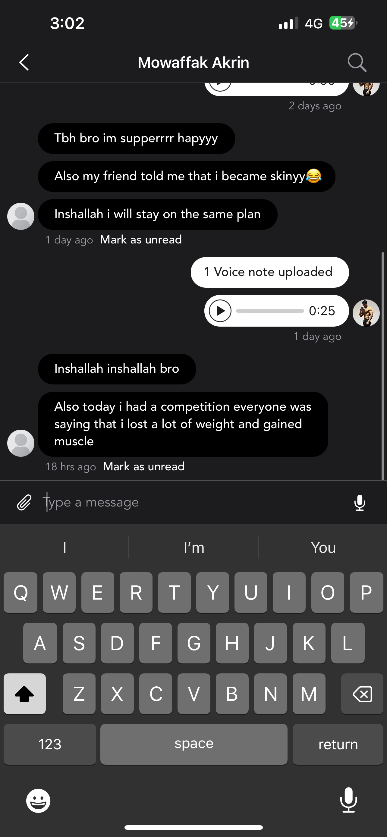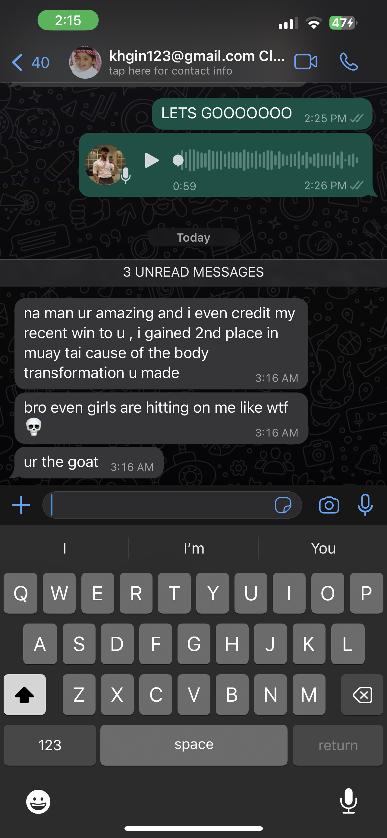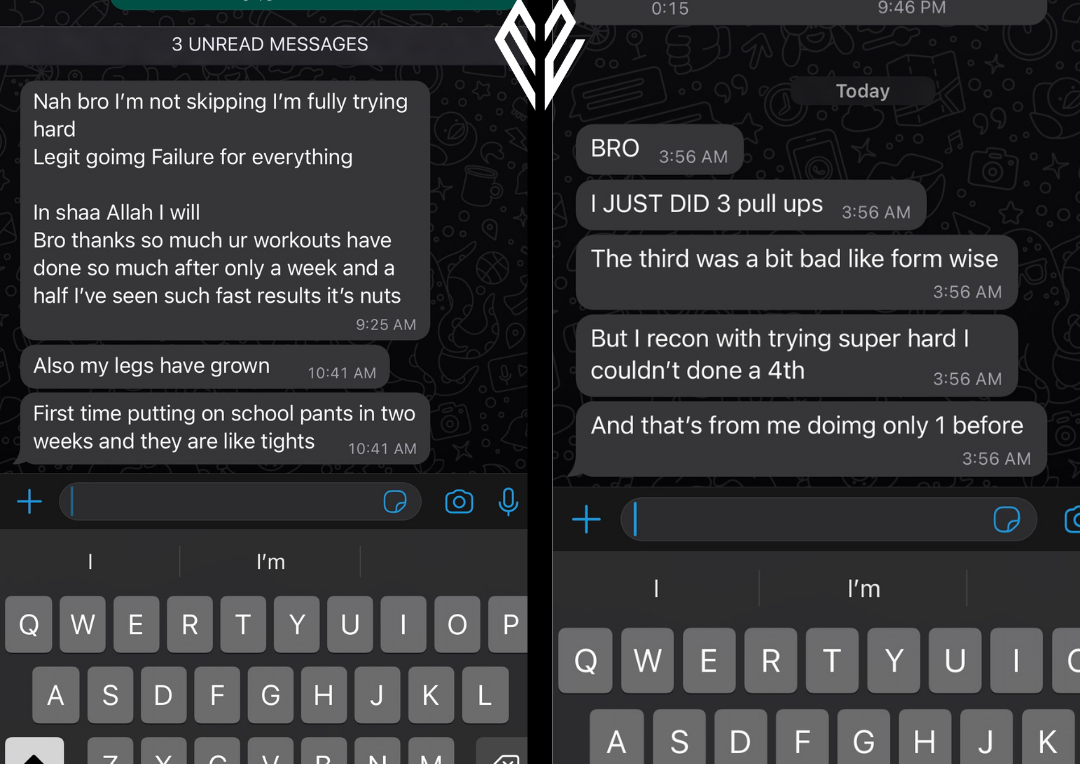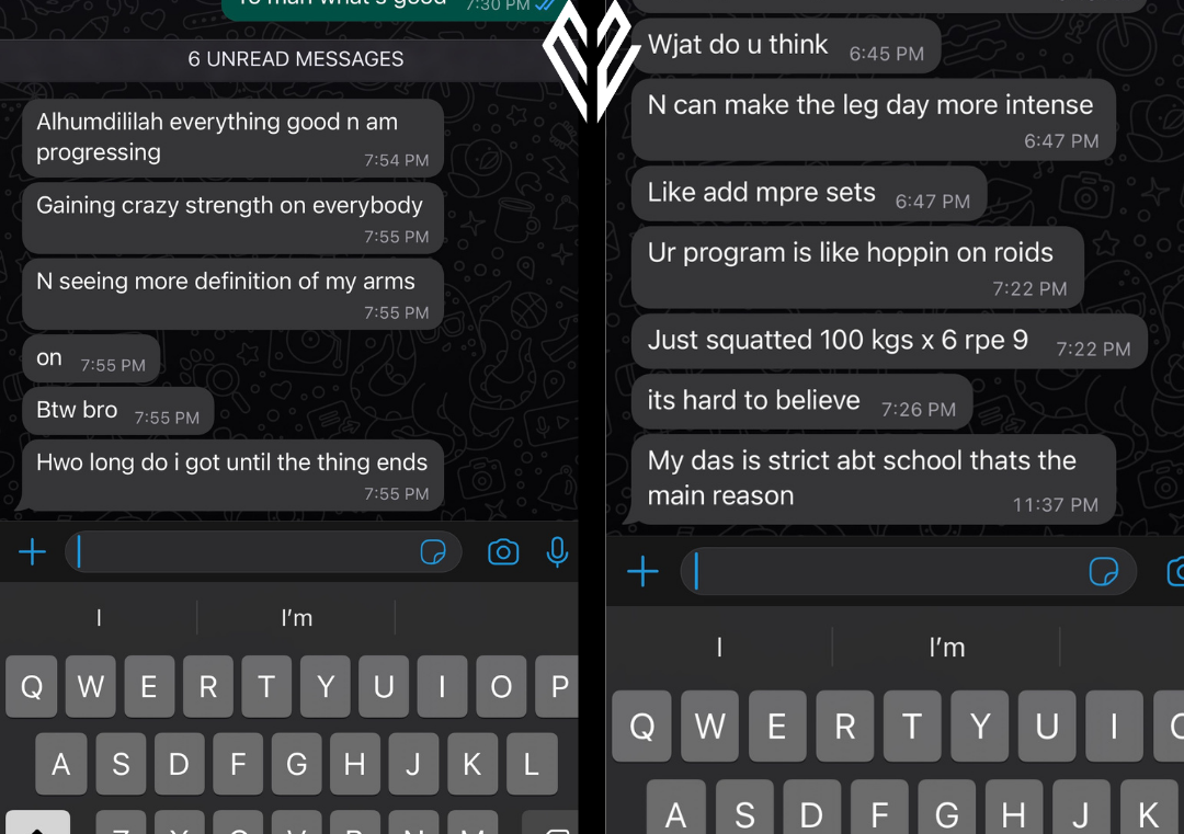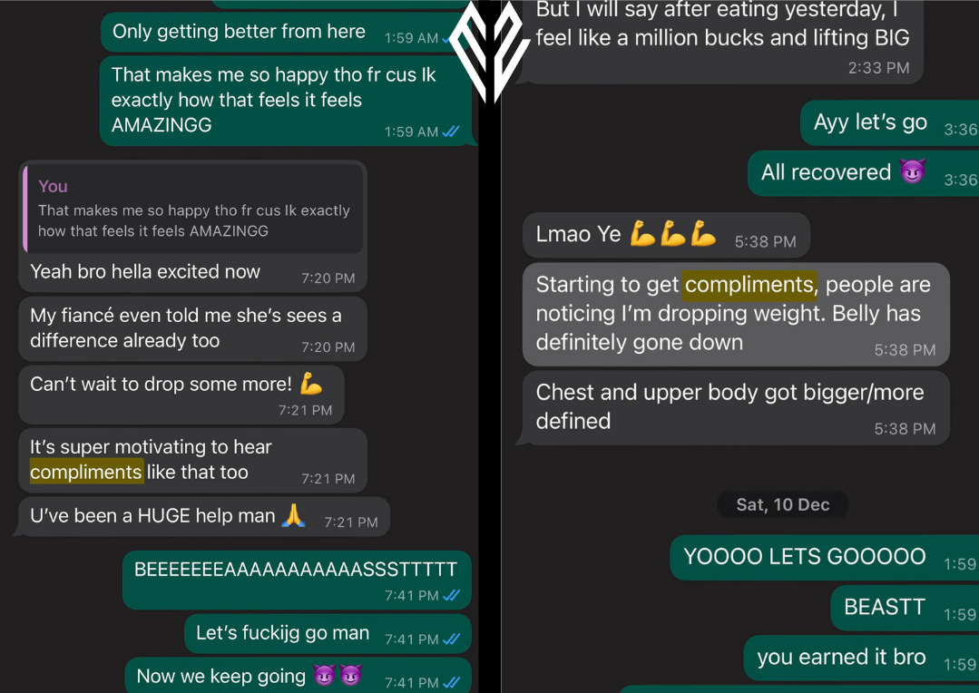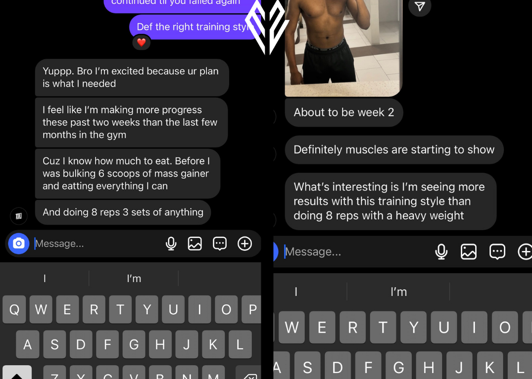 The next few slides will be text messages which should give you insight to what you might go through as a client on my coaching plans.