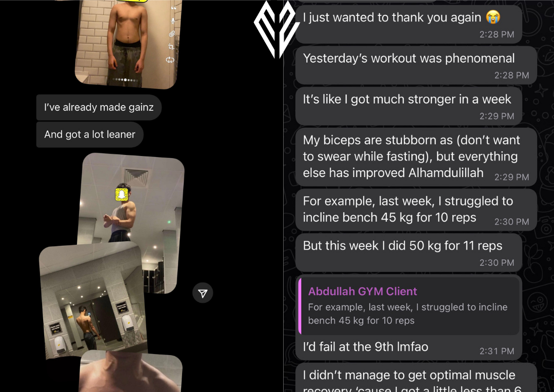 Legal disclaimer for refund terms: As you've read/ seen multiple times- I offer a full refund in the case that your results are not good and it's my fault for being a bad coach/ not replying/ any reason where the fault is on me. In case the fault is on you not following plans/ not replying/ not texting me/ quitting/ not doing check-ins then the refund is not applicable. Any means where responsibility falls upon the client, the refund does not apply. I am not liable to follow up on clients that are unresponsive, the responsibility falls upon the client to reach out to me in case of any type of need. A refund is invalid if it’s being asked for after the coaching service is cancelled and the account has been closed, as the account is closed after it’s been agreed that the coaching will be cancelled (rather than refunded). Therefore, you cannot claim a refund after the coaching period has ended as it is unfair to me. Similarly for bundles the refund is only applicable once the coaching term has ended, as once the coaching ends we will discuss your results and see if the refund is applicable. If the client has stuck to the plans and still made no results, then it's my fault and the refund will be made. If the client did not stick to the plans or do check-ins or communicate with me, then the fault is on the client so the refund cannot be made. These are the fairest refund terms I could conjure and they apply to all applicants. My goal is to be fair to everyone including myself and these terms do so, therefore they apply to everyone.