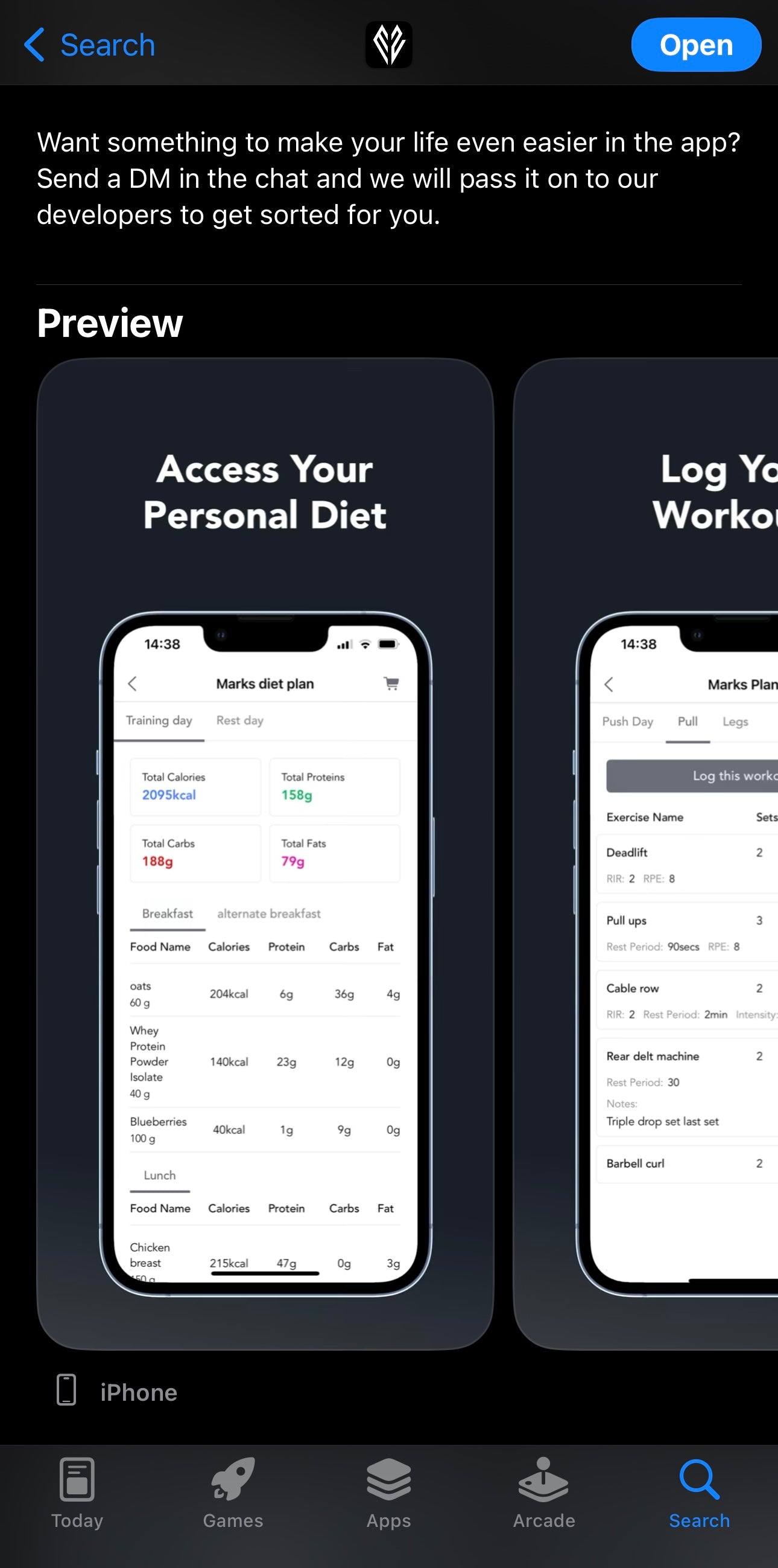Scan barcodes of your food to track nutrition, log your workouts, see your results in numbers/ graphs, exercise form tutorials, unlimited plans, easy to use interface with 24/7 access to me as your coach. Everything you would ever need to help with your fitness goals is all in once place.